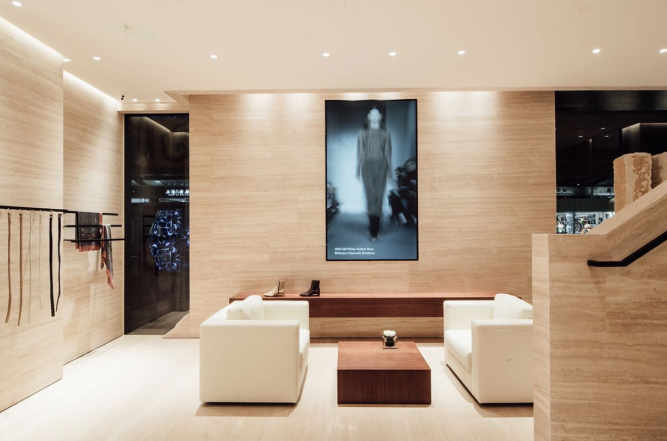 焕新的GIADA久光百货精品店在建筑风格上与GIADA米兰旗舰店一脉相承,并将成为GIADA在中国第二家配备GIADA House“许愿池”的精品店。店铺四面由来自意大利的罗马洞石铺就而成,浅色的纹理烘托出浑然天成的蚀刻感以及典雅醇厚的历史底蕴。千年自然风化的多洛米蒂岩石将店内的陈列空间进行了巧妙的区隔,视觉上的透视与店内光影交映成趣,打造出空间上别致的动态感,使现代与隽永,古老与摩登在静谧优雅的空间内实现了完美的交融。