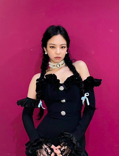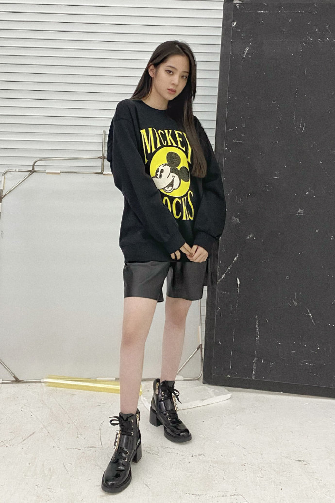 Jennie也有身着Alessandra Rich这条连身短裤的look,两人撞衫之下,竟然穿出了不同的风格。