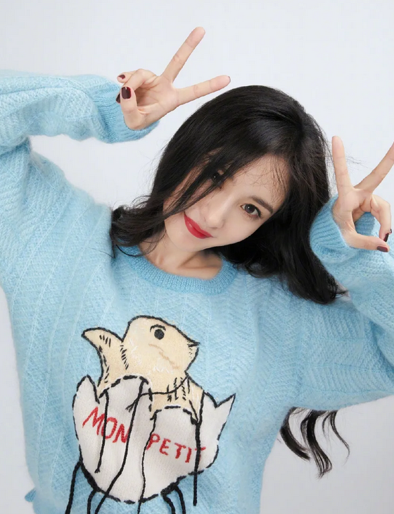 本月刚过完生日的大幂幂,当天就展现了一组毛衣look,蓝色的忧郁不是真的忧郁,大海是忧愁,而天蓝色穿在美少女们身上,只会是甜蜜蜜!