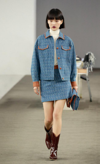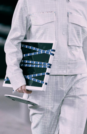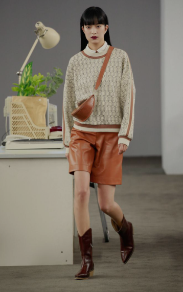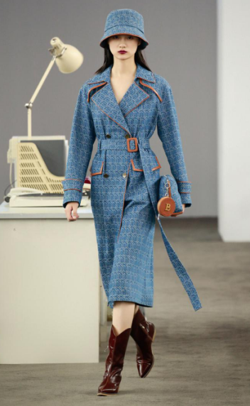 秀场上,XII BASKET MONOGRAM图案在时装表达上以双面提花、网格绣花、笔触印花等设计手法呈现出高级及考究的廓形:在针织衫上运用经过纯手工切割的古老工艺重构独特纹理;并用品牌的独特印花焕新风衣的年轻化表达。