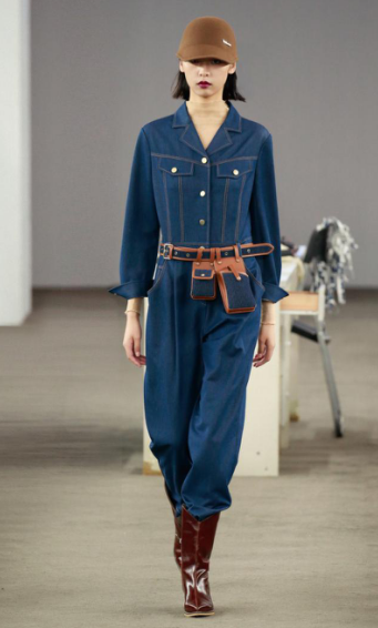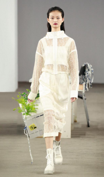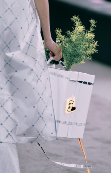 SS 2021深圳时装周上,XII BASKET十二篮将“office”搬到了秀场。伴随着键盘打字声、微信消息提示声、订书机、打印机等办公室常见的背景声音,模特们身着十二篮2021春夏款,将融合创意的档案袋、文件夹、电话机、键盘等奇思妙想的办公用品放在伫立在T台中央的办公桌,最终,一个奇妙古怪但又符合逻辑的办公场所呈现在我们眼前。