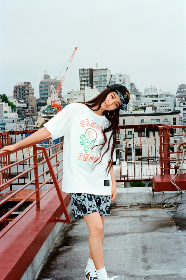 该系列涵盖成衣、皮具、鞋履和配饰,完美融合BAPE®街头潮牌文化与Coach精湛传统工艺,彰显双方品牌发源地城市共有的真实与乐观主义态度。特色包袋、连帽卫衣和T恤印有Coach标志性图案和BAPE®经典标识相结合的限量系列印花,兼具高端时尚内核与街头潮流风尚。