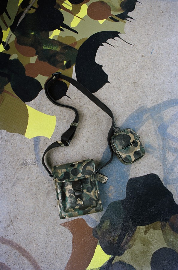Coach 迷彩印花系列于2015年首次推出,此次全新系列在原有设计中融入荧光元素,并尝试将滴彩手法与传统迷彩相结合,展开全新诠释,传递积极正能量。该系列的产品包含手袋、T恤、运动鞋、运动裤和卫衣。