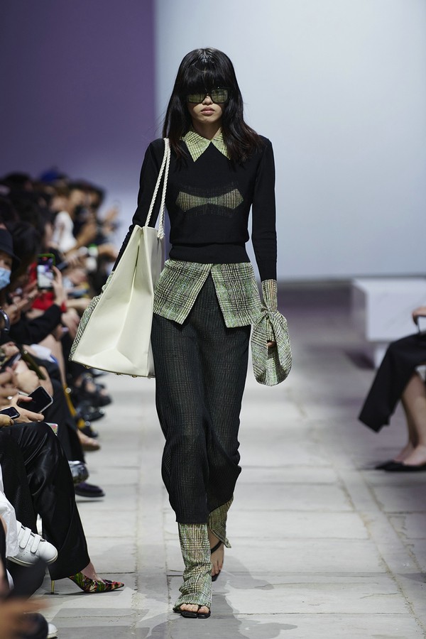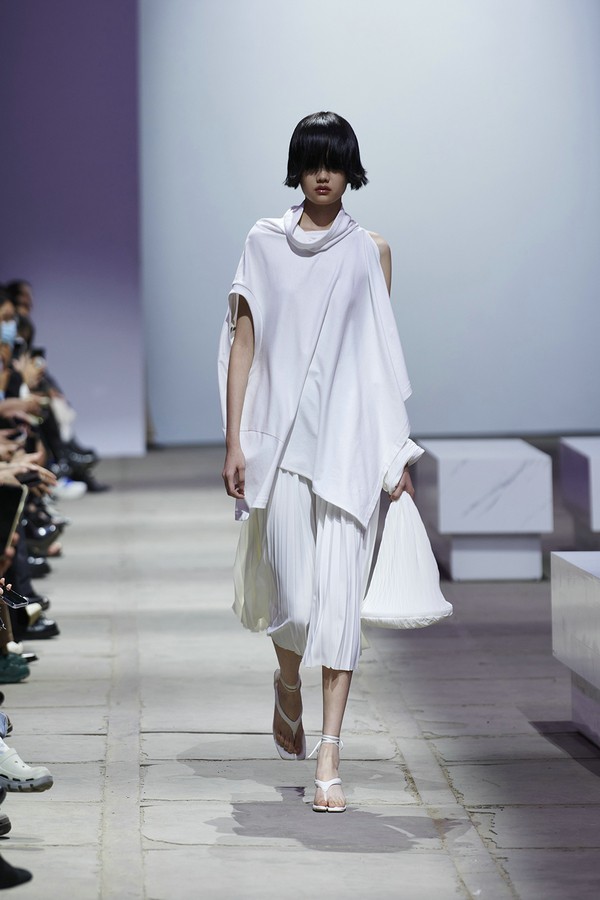 这一季的MAYALI从思考焦虑症根源的角度出发,跟大家一起探讨作为生活在超现实主义谎言中的女性,应该从群体无意识行为中解脱,真实、热烈且自由地生活。本系列延续了以往肤质连体衣的品类的基础上,在人体不同活动部位以及关节处加入了圆形立裁手法;真丝绸缎缠绕蔓延,像压褶面料一样随着身体流动;轻薄的丝袜面料搭配硬挺的春夏羊毛面料,通过理性的方式阐述了女性的多面性。 表现了当代女性的刚柔并济。