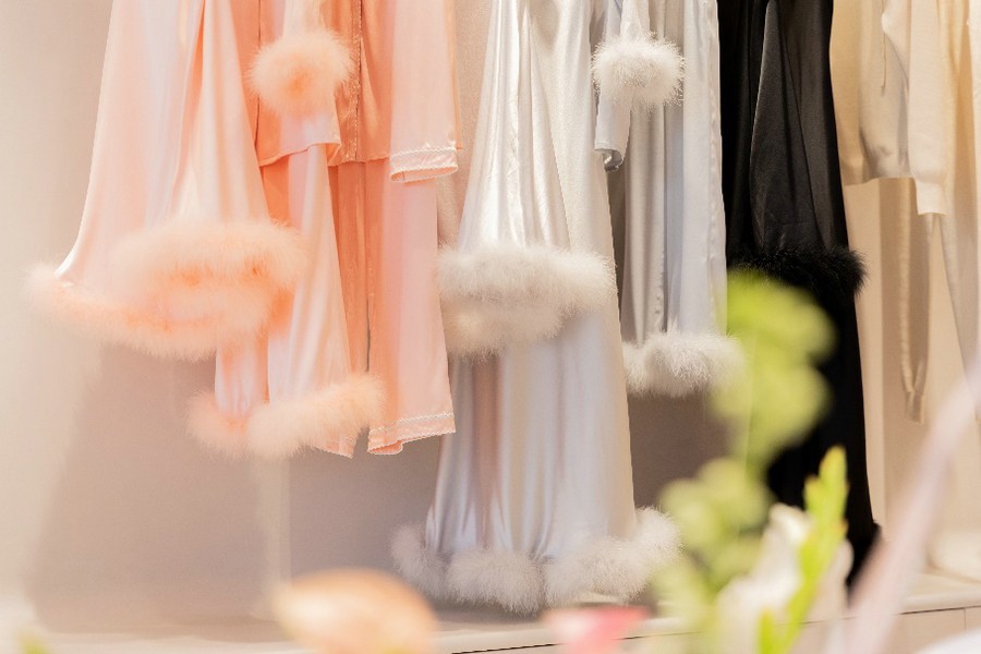 此次活动中MANITO首次展出了2021圣诞限量系列,经典桑蚕丝搭配鸵鸟毛和高级亮片,浓郁节日气息,为浪漫圣诞提前预热。经典黑、白双色外,新调制亮银、淡粉两色,为秋冬家居再添奢华质感。常规款式首次加入莫代尔,与天然桑蚕丝混纺弹力面料,滑爽透气有弹性,为穿着者带来近乎裸感的全新体验。