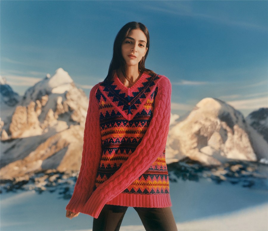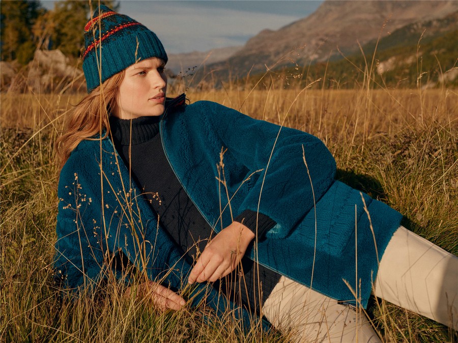 该系列以提花为主题,借助不同的纹理和版型,让针织衫、外套和配饰灵动演绎多色几何图案。面料采用品牌标志性纱线:羊绒和真丝混纺Cashfur面料,带来无与伦比的舒适感受;Coarsehair®羊绒借助扭织针法,经由手工缝纫呈现非凡质感。配色从素净的白色、麻灰和银色,到鲜艳的高山蓝和赭黄,缤纷演绎北欧图案。