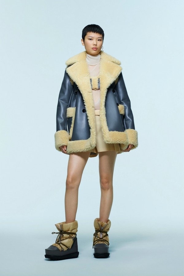 如同剪羊毛般的毛料质地增强了服饰温柔与厚實的触感。重新配置、精心制作的针织仍是品牌的拿手好戏。夸张的雪地靴成为本季造型的根基。