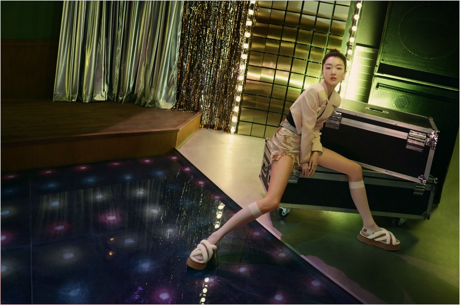 亚太区代言人周冬雨演绎UGG®经典栗色迪斯科交叉拖鞋