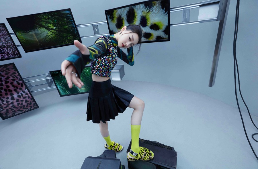 亚太区代言人周冬雨演绎UGG®动物纹款茸耶毛茸拖鞋