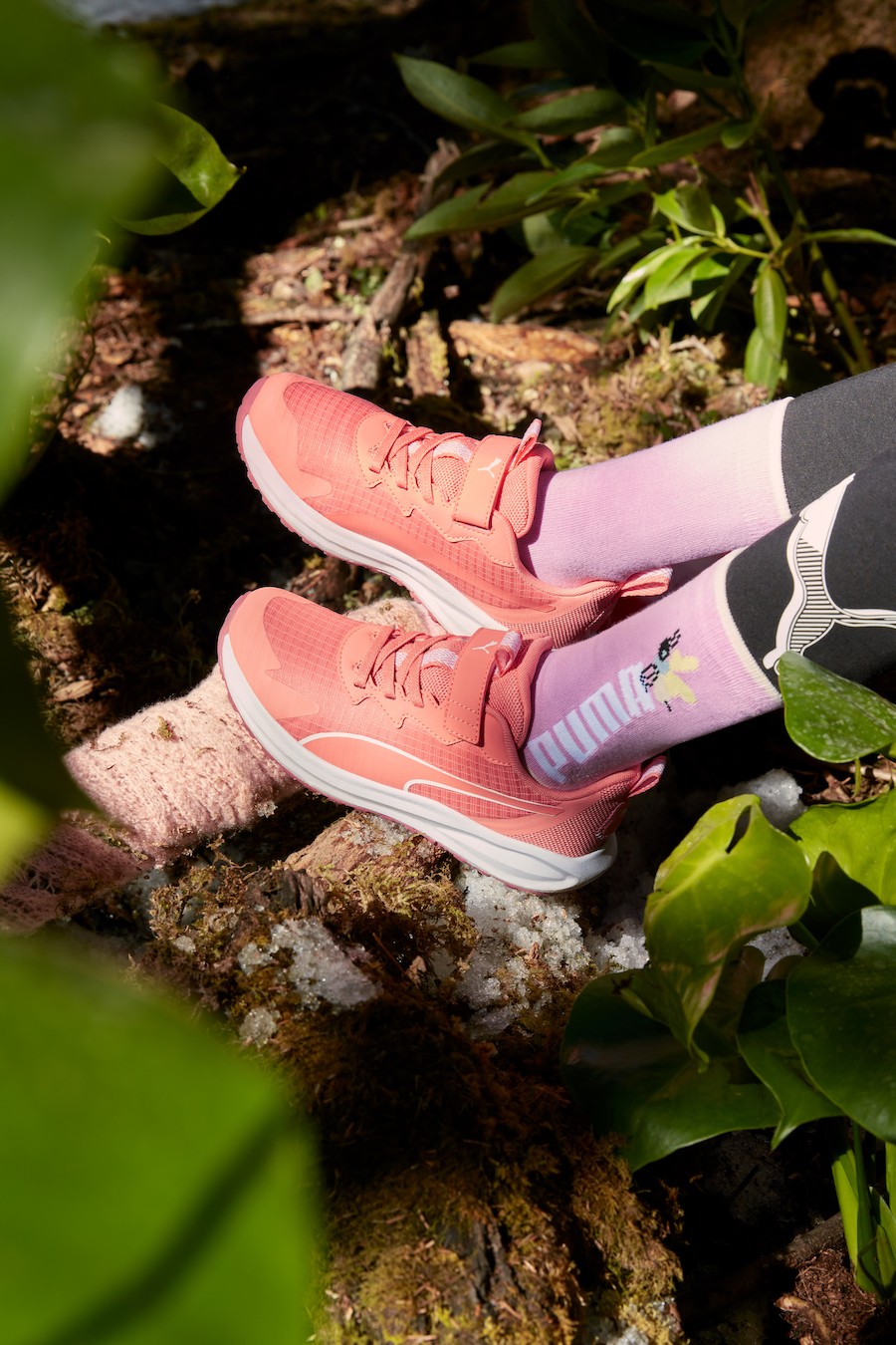 FOREST FELLOWSHIP系列推出柔软细腻的羊羔毛连衣裙,搭配黑色紧身裤,将女孩的可爱俏皮尽情诠释。上身软糯舒适的羊羔绒,瞬间开启冬季温暖模式;梦幻粉色邂逅清亮明黄色,自成一派的撞色设计灵动感十足。女孩Twitch Runner Trail鞋款造型流畅,康乃馨色调柔美自然,搭配昆虫图案的粉红中袜,让这个冬天妙趣横生。