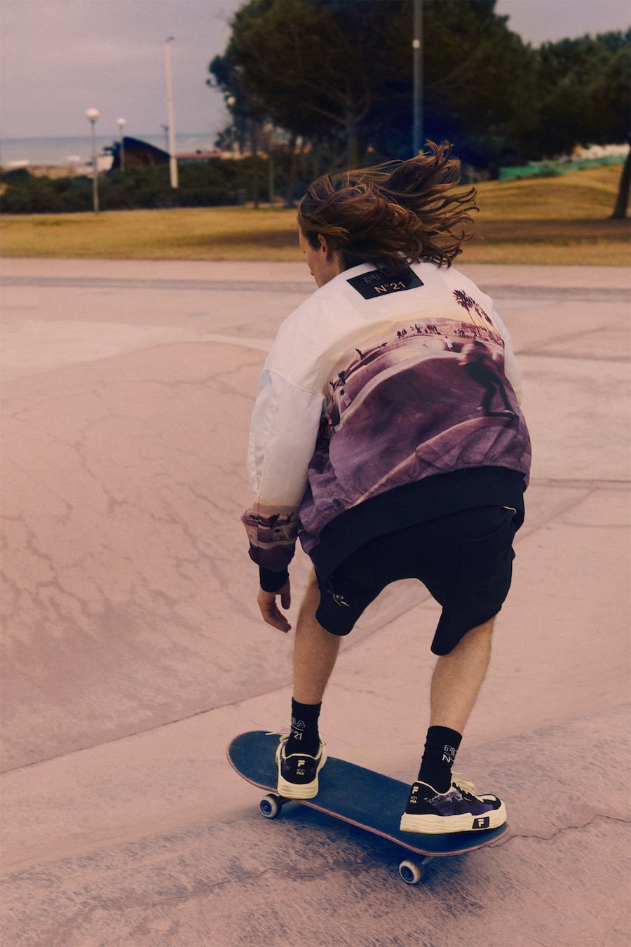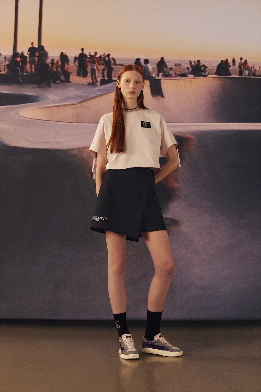 【2023年3月1日】初春回暖之际,FILA旗下潮流运动品牌FILA FUSION再度发布与意大利高级时装品牌N°21联名系列,双方延续首度合作期间时尚与运动交融共生的概念,将视角聚焦于海边落日下的滑板公园,以照片满印打造悠闲街头氛围。以精选材质特别打造的抽绳连衣裙、连体背带裙等创新款式,融入经典工装剪裁和撞钉细节,彰显新世代FUSION硬糖女孩甜酷一体的本真个性。