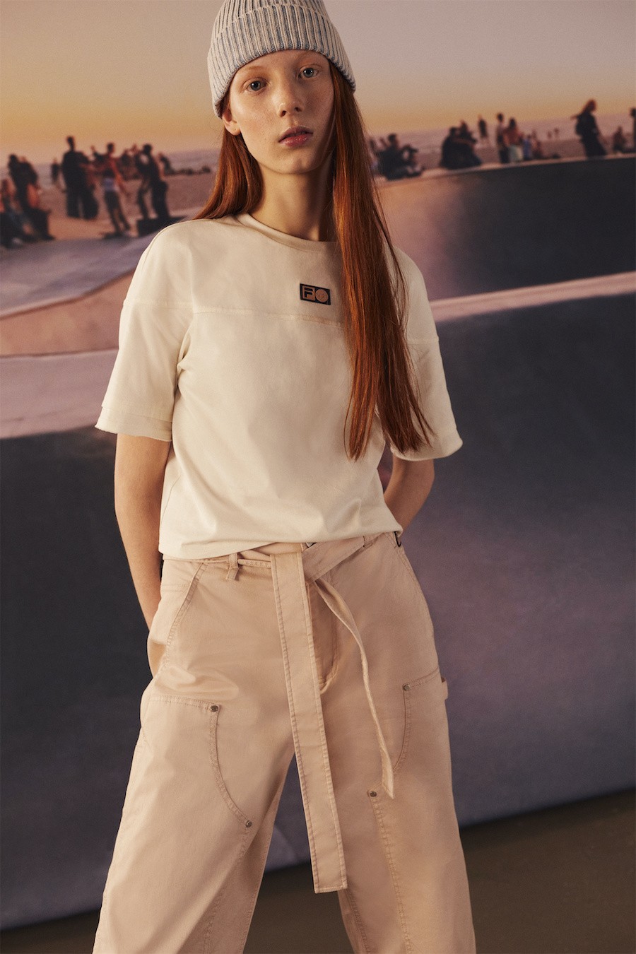 本次联名带来了极具潮流属性的满印系列产品,深入欧洲著名度假胜地马贝拉取材,将日落时分的海滨滑板公园生动呈现,极具视觉冲击力。府绸面料、高克重吸汗网眼布、亮面尼龙等高质感材质,清晰承载落日滑板公园的光影变幻。落日余晖下的沙滩与充满活力的滑板运动有机融合,配合轻松自得的Oversize风格剪裁,休闲的街头潮流感呼之欲出,昭示当代青年随性自在的态度。