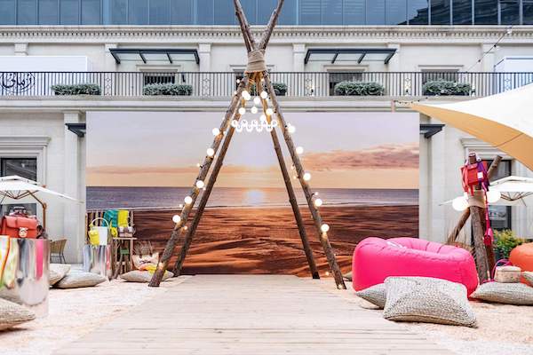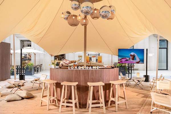 2023年3月23日,法国奢侈品牌Longchamp「珑骧」以Glamping为灵感,于衡山路8号举办 “野奢度假派对”,在绮丽的落日色调中,将动感、奢华的法式假日带进城市。