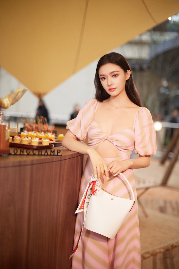 演员林允身着Longchamp春夏系列粉色连衣裙,彰显优雅气质。在白色Epure包袋及黄色高跟鞋的加持下更添夺目靓丽,绽放青春魅力。