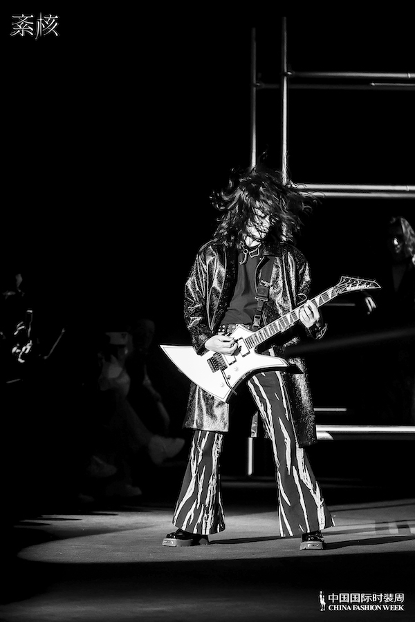 紊核的这一季“呐喊工厂”服装系列的设计理念,源于紊核对当代青年潮流文化的极致热爱。设计师提炼了电吉他的线条与廓形,包括其组成部件的轮廓,使之恰如其分地融入到服装设计之中。通过提取机车夹克中的弧线元素,并将其与紊核品牌标志性的弧线形体相结合,创造出一系列独具匠心的设计作品。这些设计既融合了摇滚音乐和机车文化的狂野风格,又展现了紊核品牌的多元化和包容性文化内涵。在服装细节上,通过定制使用多种精致的金属配件,让紊核的这一系列设计充满了工业风格和摩登感。散发极致的热烈却又保持绝对的冷静和克制,新系列的服装款式以廓形西装和大衣为主,辅以裙裤和衬衫等日常实用款式,展现出时尚与实用的完美结合。
