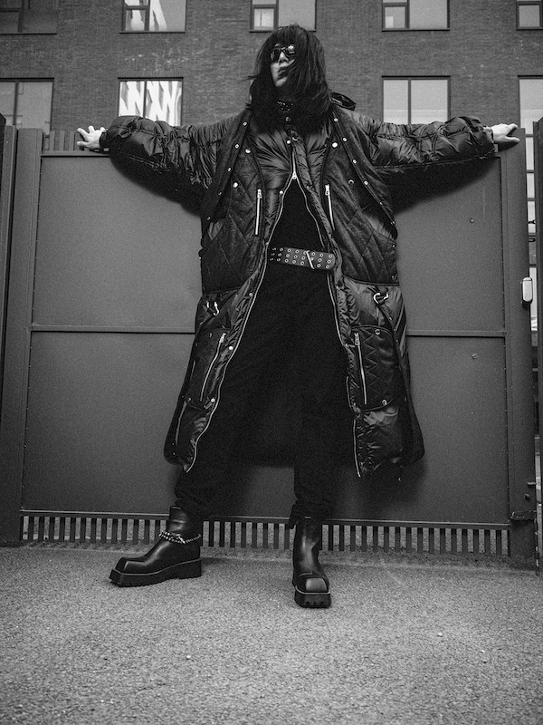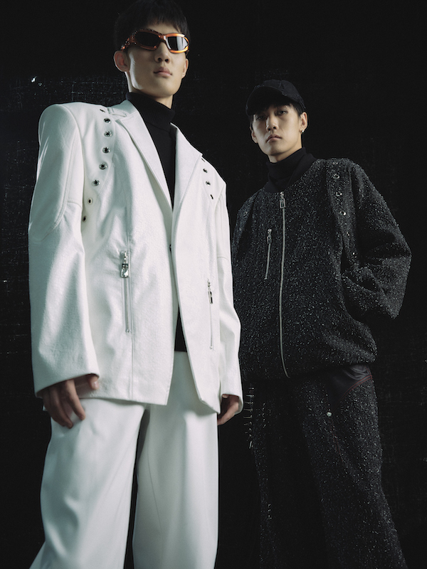 紊核作为一个新兴的中国先锋设计师品牌,本季度设计灵感来自于工业重金属摇滚乐队德国Rammstein的音乐和他们独特而富有冲击力的着装风格。Rammstein擅长将金属乐和电子舞曲的属性巧妙融合,具有强烈的力量感与不羁性格,高度契合品牌所推崇的多元化与包容性的价值观。同时紊核积极融入当代青年文化, 设计师金佳祺在作品中大量运用例如摇滚、机车文化等设计元素,并且坚持设计实用性的设计原则,使用了大量防风防水同时保持透气性的户外定制面料,将实用性和美观性相结合,为消费者带来真正的高品质时装。