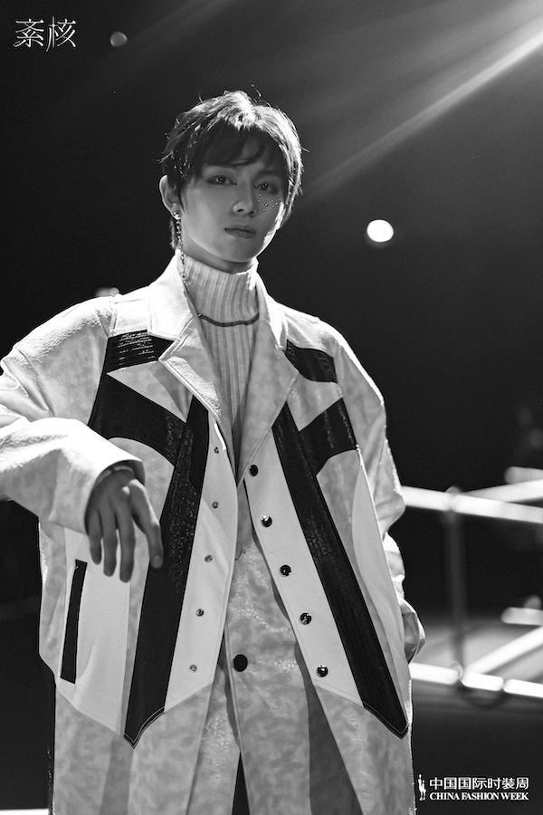 紊核同时也是一个致力于推动环保,具有强烈社会责任感的品牌。本季系列中采用了玉米纤维、人造皮革等定制环保面料,以及户外三防面料和未来感夜光纱定制面料等,这些面料不仅对环境友好,还具有高质量的面料性能与挺括有形的服装外观,从而使紊核的服装更加舒适和耐用。