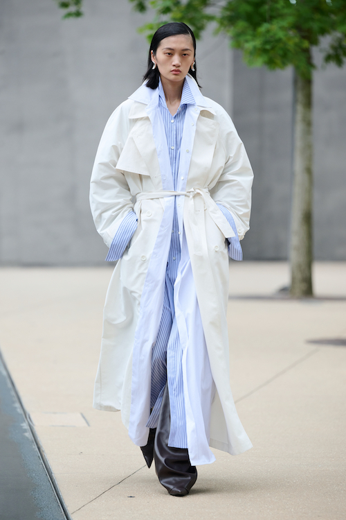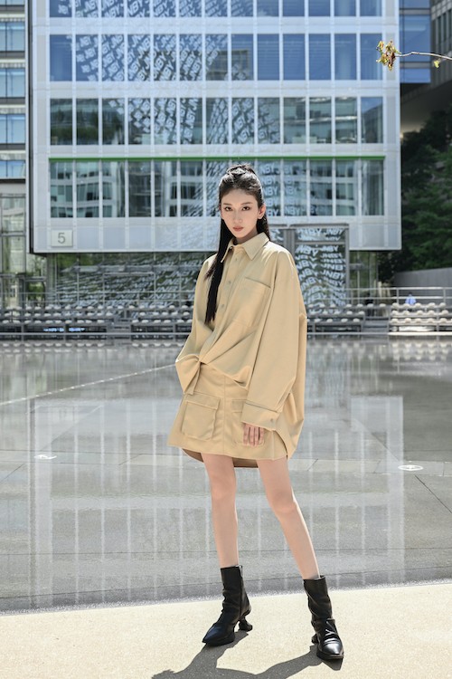 而在廓形设计上,本季产品更注重廓形比例的平衡,进行了风衣的改良、直线加长和截断等处理,在简洁的平面上展现了更多变化的设计元素。