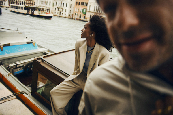 Golden Goose挚意呈献2023秋冬Journey系列,以率性格调歌颂品牌起源地——意大利威尼斯。全新系列从威尼斯当地居民身上汲取创作灵感,透过这群热爱这座城的造梦者 的非凡视角,重新焕现经典地标之美。男女装单品包括双排扣西装外套和精裁长裤等服饰,交汇贯穿整个系列。立体挺括的时装廓形,悠扬碰撞多元色调精选缤纷面料匠心打造,例如浅山毛榉色满饰提花羊毛、沙色羊毛华达呢、深灰色细条纹羊毛以及棕色和米色的精 美人字纹圈圈纱羊毛。