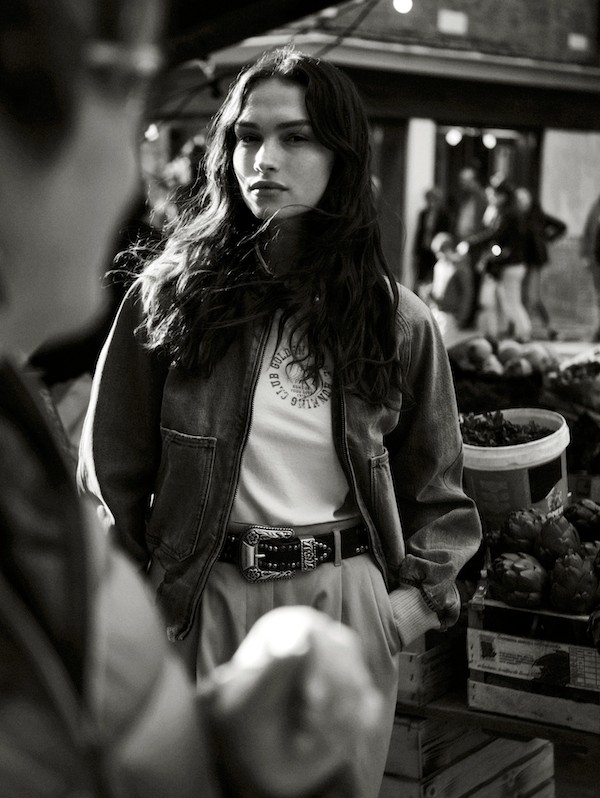 多款牛仔单品运用手工砂洗工艺打造成型,外观仿似历经 风吹日晒,让人联想起洛杉矶滑板运动员所穿的牛仔裤。