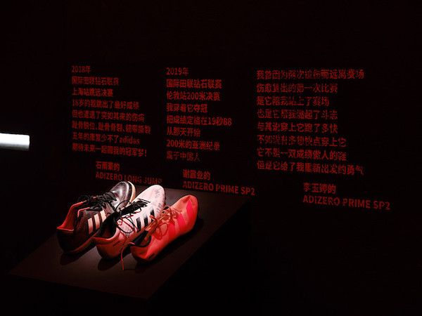 除此之外,我国田径名将谢震业、石雨豪和李玉婷的战靴也在活动中进行了展出。2019年,谢震业在国际田联钻石联赛中以19.88的成绩缔造了新亚洲纪录。当时,他上脚的ADIZERO PRIME SP2空降现场,吸引众多“狂徒”拍照打卡。石雨豪的战靴ADIZERO LONG JUMP既见证了他个人最好成绩,也陪伴他度过了艰难的伤病康复期。陈列中ADIZERO PRIME SP2这双战靴也赋予了李玉婷力量,她曾在遭遇伤病时深情流露“与其说穿上它会跑多快,不如说我多想快点穿上它。”