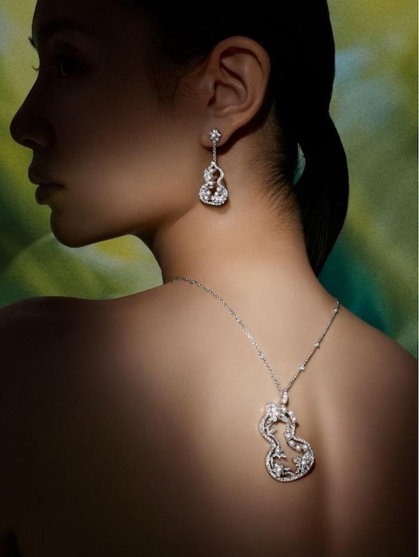 闪耀的钻石如同繁花盛开,巧妙地衬托出枝叶,而花卉与藤蔓的图案层次分明,展示了Qeelin卓越的工艺。吊坠耳环可单独佩戴,也可与同系列的项链搭配,为多种场合提供优雅与奢华的选择。