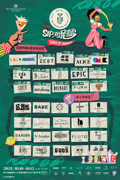 2025年10月8日,上海—— 由国际知名烈酒集团保乐力加倾力打造的首届SIP鸡尾酒节将于10月10日至12日于BFC外滩金融中心举办。三十余家来自亚洲及中国本土的先锋酒吧将闪耀上海外滩,打造一站式亚洲鸡尾酒体验场。不论是专业调酒师、鸡尾酒老饕还是初探鸡尾酒世界的爱好者,都可在这场为期三天的鸡尾酒文化之旅中收获灵感、体验与连接。