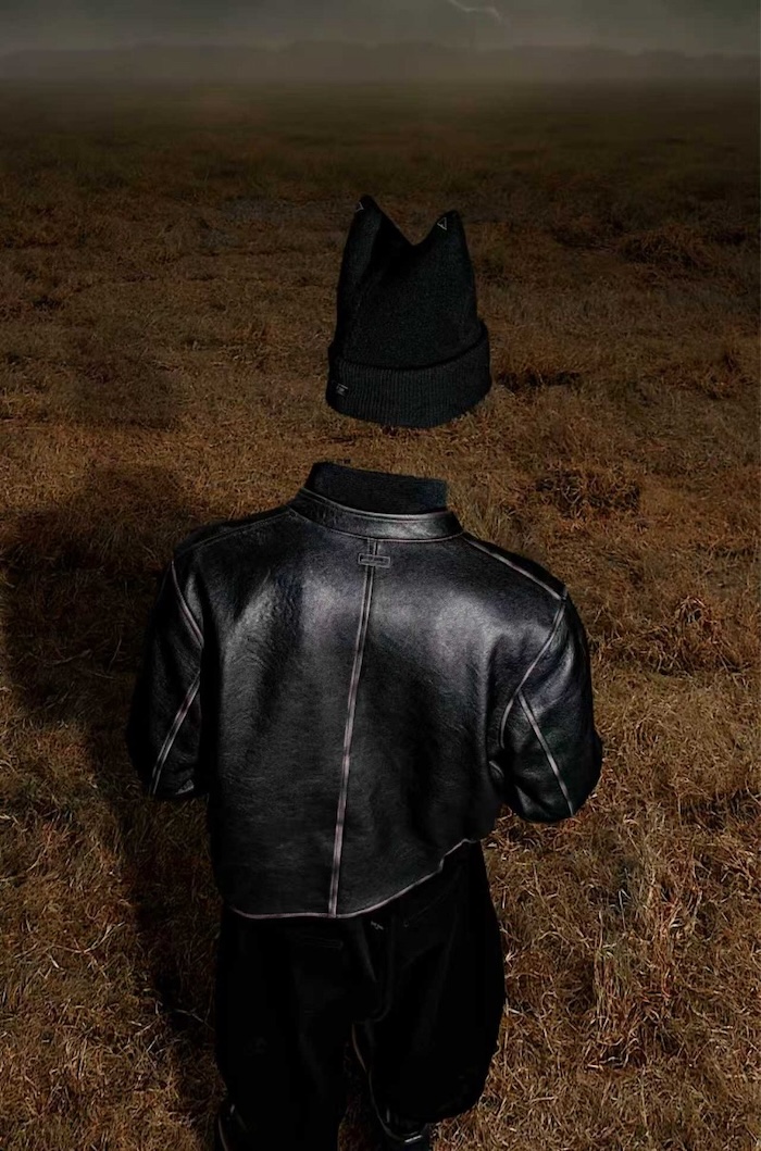 “ACCEPTANCE”将内省情绪具象化为设计语言,在结构与材质之间寻找平衡。主色调延续品牌的黑白双色体系,重点单品包括立领西装外套、皮夹克及牛仔夹克等。系列选用小羊皮、天丝(Tencel)等优质面料,在挺阔与随性间取得平衡。细节上,斑驳质感五金件、“TEAM WANG DESIGN”金属标识、以及自然磨边处理,为服装注入细腻层次。整体风格呈现从正式到街头的转变,最终以一套象征力量与克制的纯白牛仔套装为系列收尾,诠释“ACCEPTANCE”这一主题。