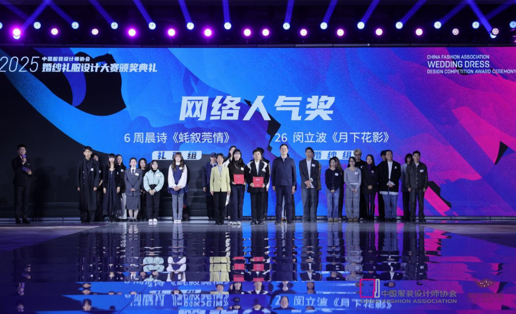 经过激烈角逐,婚纱组与礼服组的金、银、铜以及网络人气奖的归属落定。婚纱组金奖由严奕摘得,其作品《折光》以精湛绒花工艺与折纸创意备受赞誉。