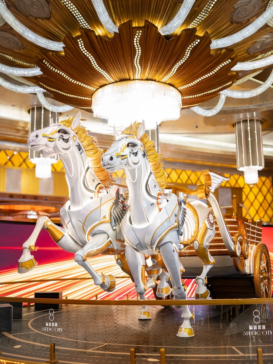 位于新濠影汇主入口高达3.5米的“骏马飞车”大型打卡装置率先成为全场焦点,设计灵感源自骏马奔腾的英姿,结合未来感造型与节庆元素,宾客可登上装置拍照留念,化身驰骋新岁的主角,留下极具气势与好运寓意的新春合影。新濠影汇更特别安排英姿焕发的“骏马骑士”现身,与宾客近距离互动合照,新一年一起骏马腾飞,幸福满载。