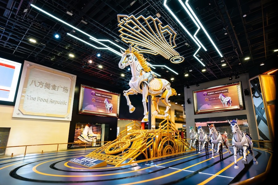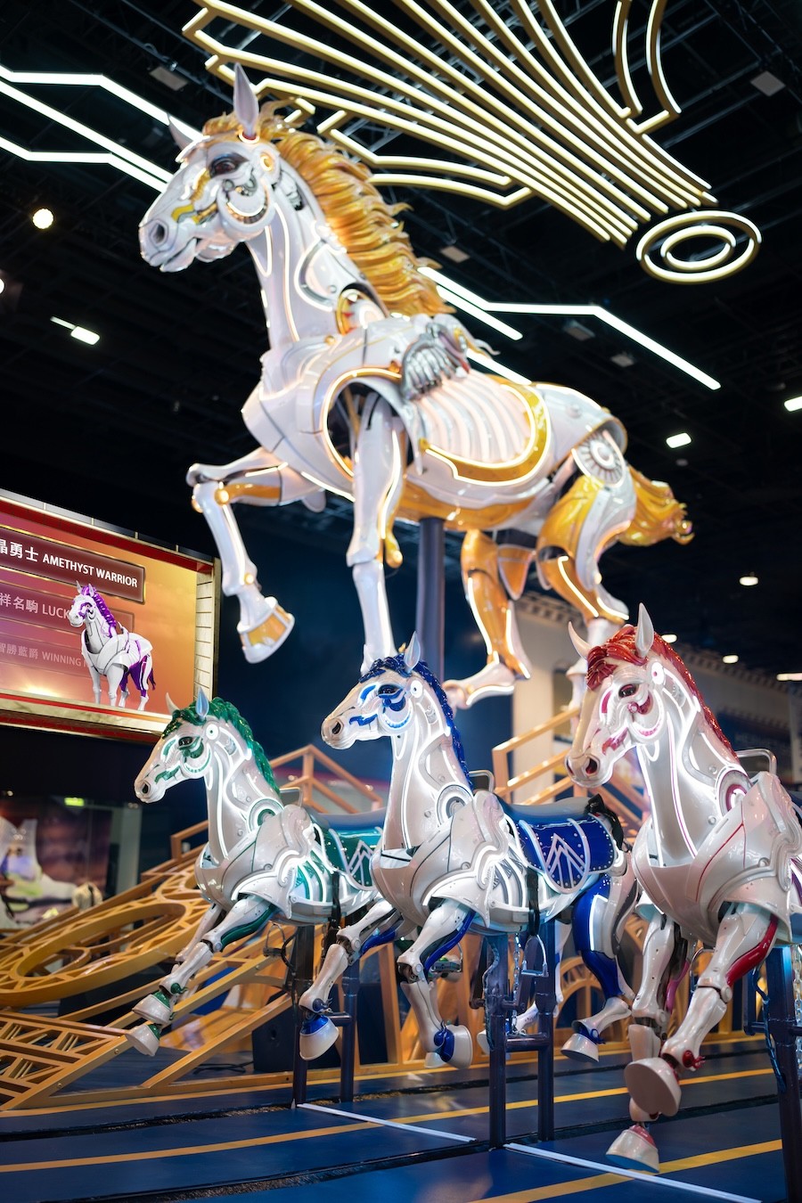 作为本次贺岁活动的重头戏之一,新濠影汇倾力呈献全澳首个机械跑马场——“骏步跑马场”。其中主骏马高达5米,气势非凡,场面震撼。濠友荟会员凭指定消费更可亲身骑上机械马,感受策马奔腾、冲线夺冠的畅快体验,寓意新一年一马当先、势不可挡。