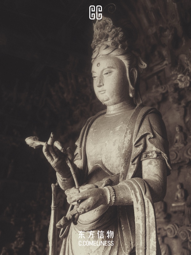 它不着急绽放,所以花瓣微微合拢,将开未开。它不着急证明自己,所以不需要长在最显眼的位置。它不着急被看见,所以只是安静地待在菩萨的掌心里。一千多年过去了,它依然在那里,不急不慢,不争不抢。