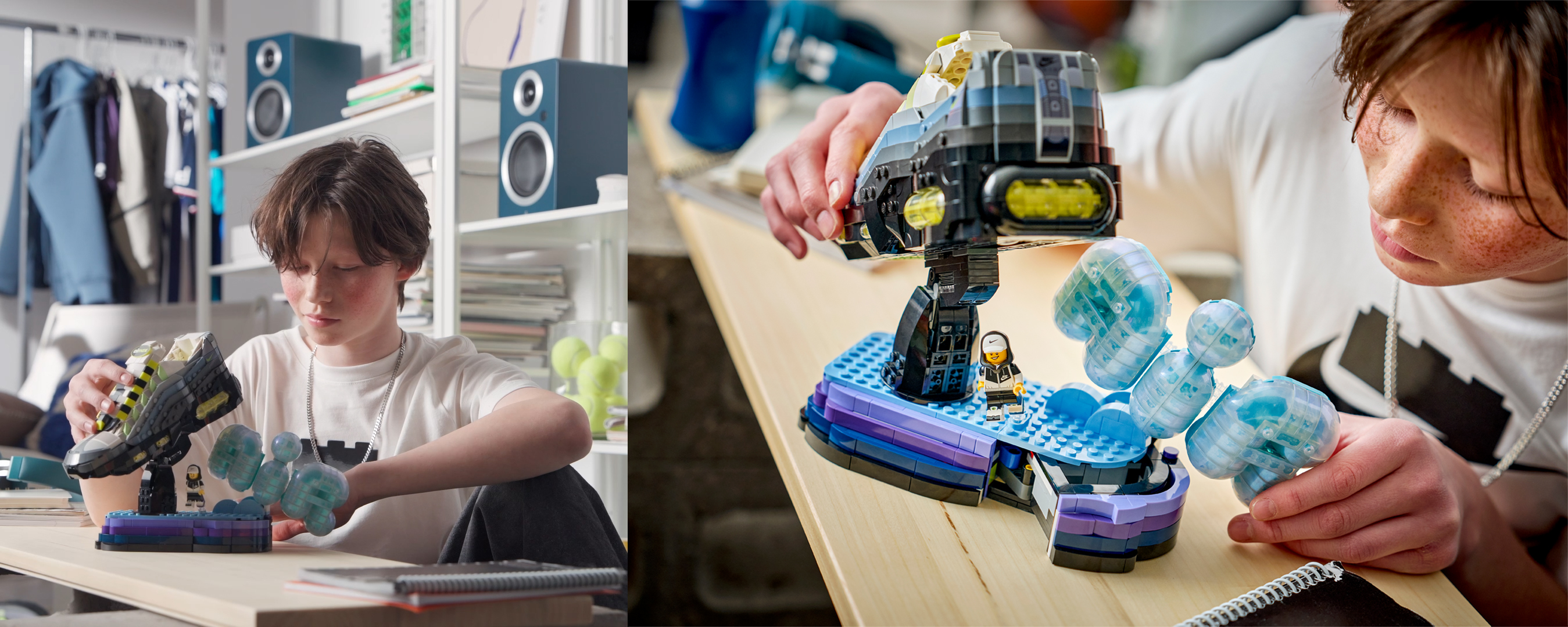 无论你是热爱拼搭的孩子,还是铭记经典的大人,全新联名系列都能让你尽情沉浸在自己的玩乐世界!更多详情,敬请访问www.nike.com/lego或 www.lego.com/nike。