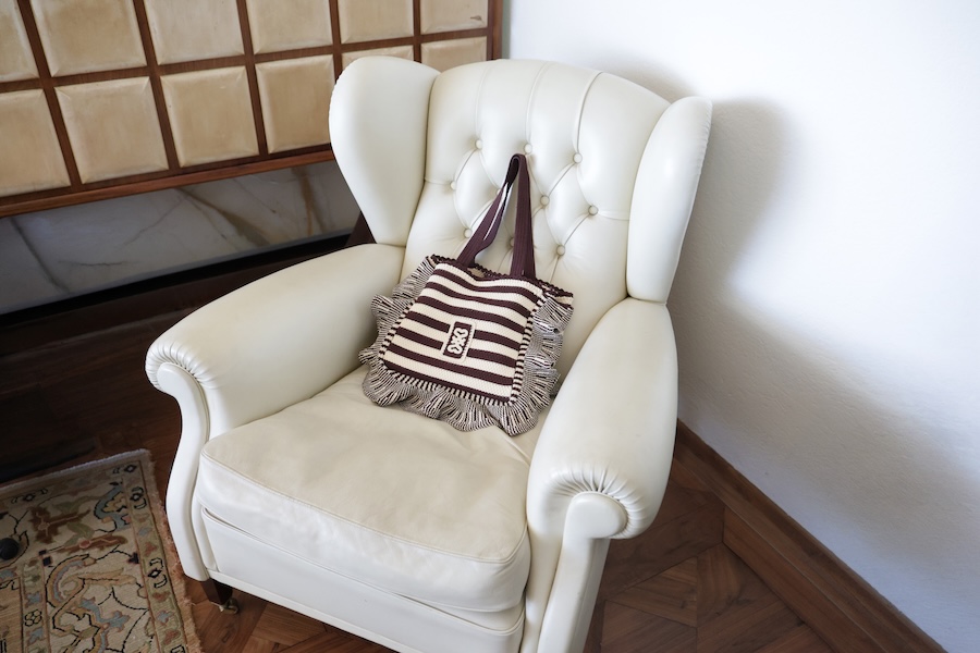 包袋设计汲取70 年代复古灵感,推出托特包与手拎包两种款式。凭借其丰盈的质感与富有趣味的几何条纹设计,自成焦点。镂空、珠饰与织纹的细节点缀
